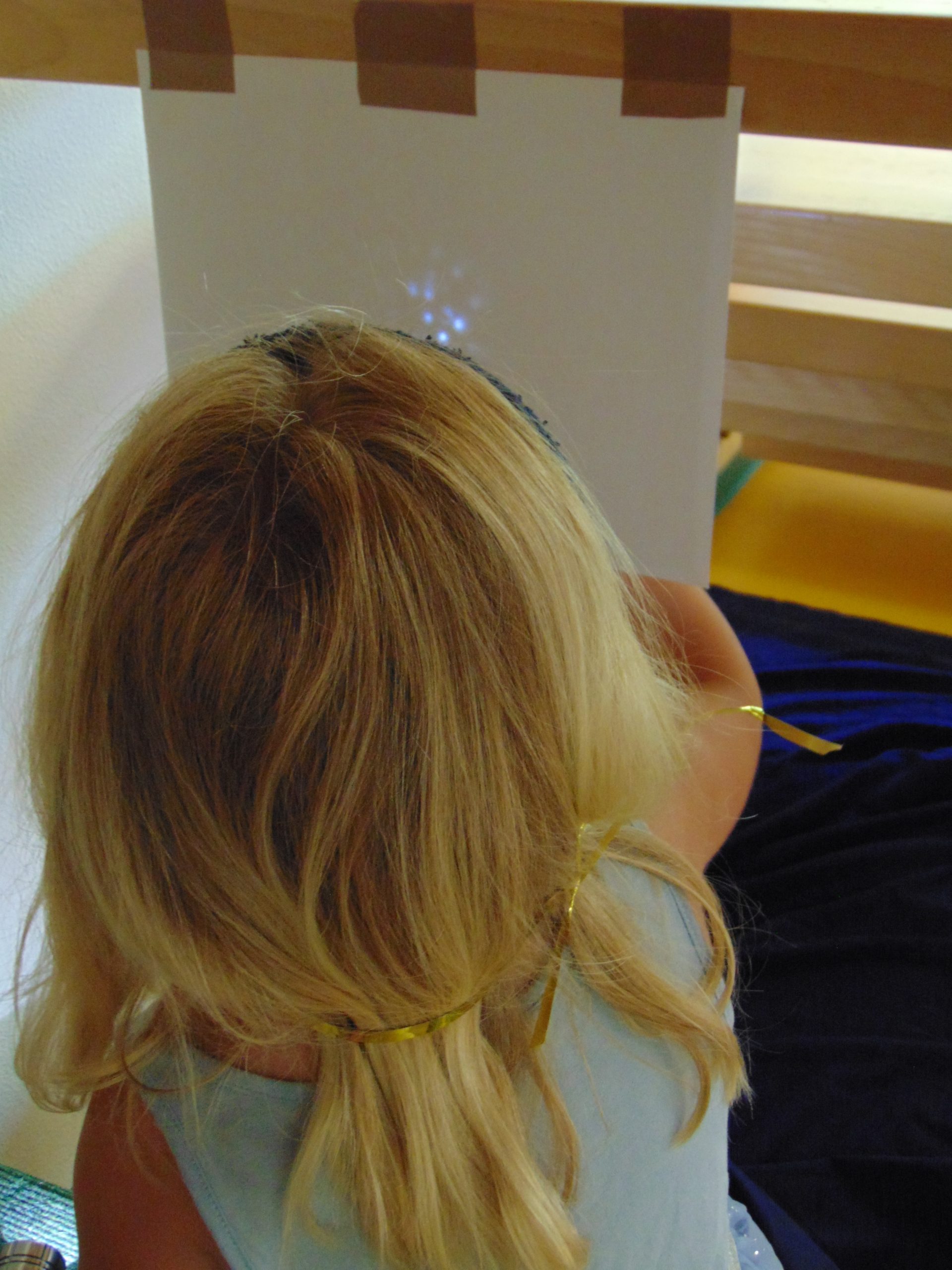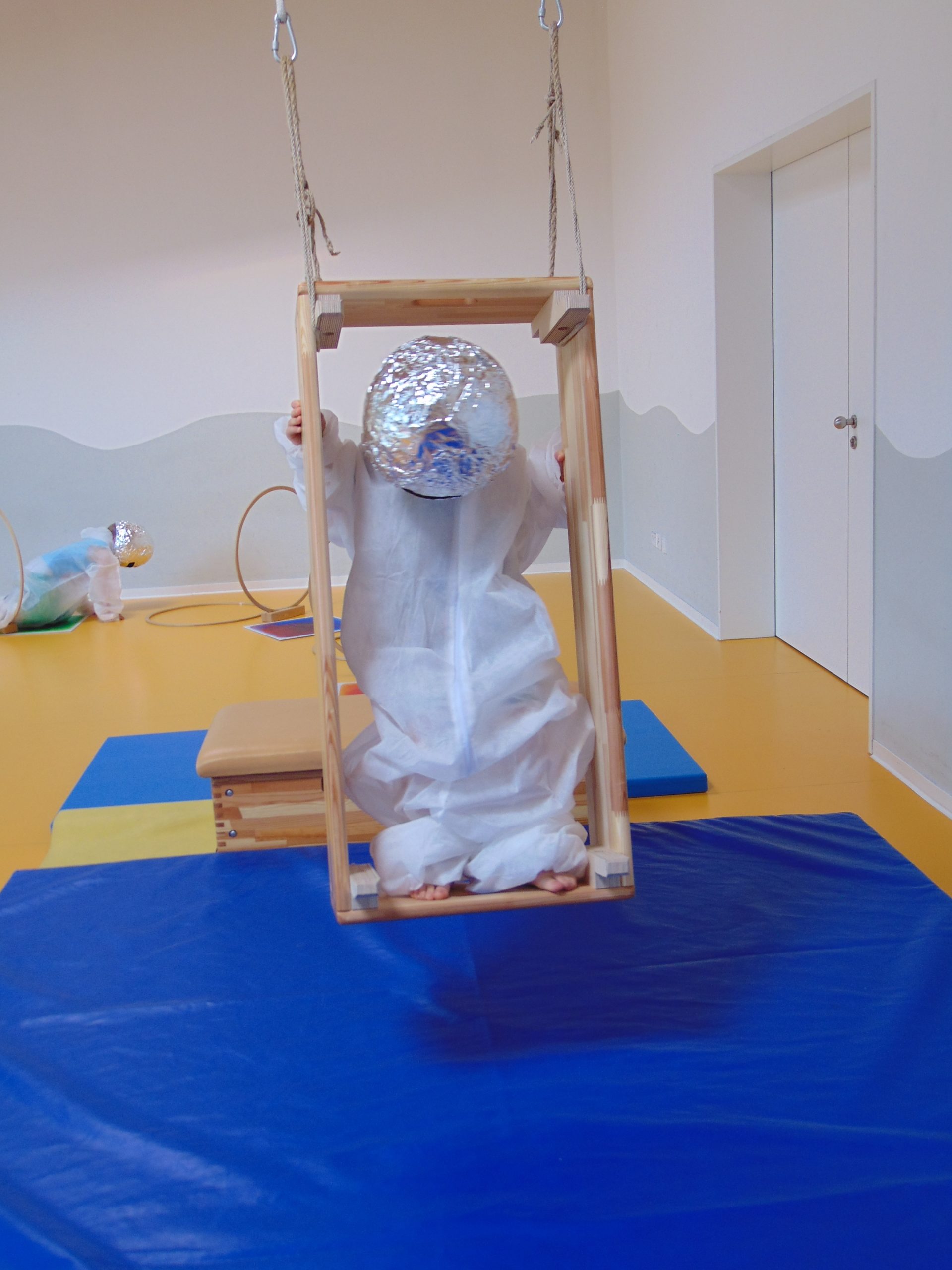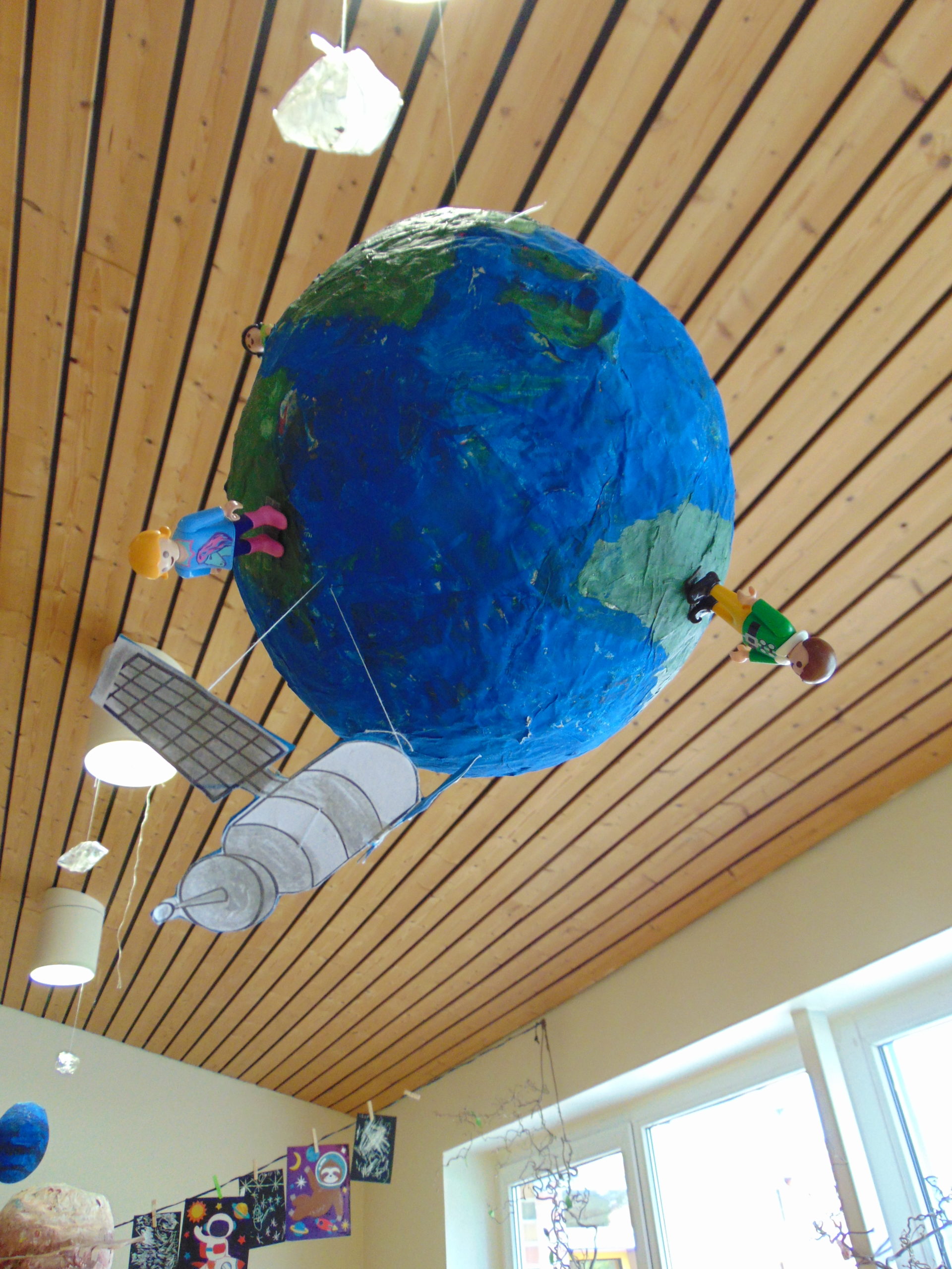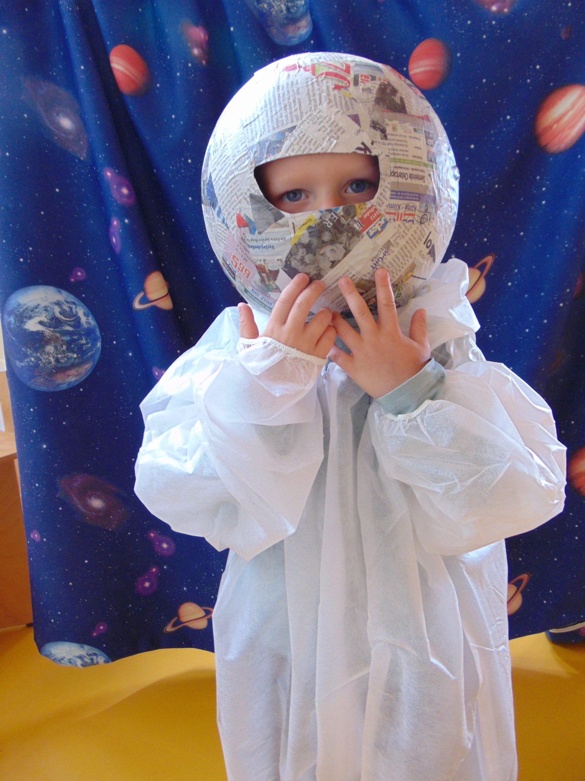 Die Kinder erlebten in jeder Gruppe eine Experimenten-Station, z.B. bauten sie kleine Puste-Raketen, konnten eine Mondwanderung machen (Bewegungslandschaft im Turnraum) oder sich wie ein Astronaut fühlen.